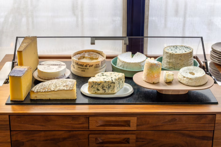 Instead of dessert, I opted for the cheese plate. I selected three cheeses. My favorite was the Fourme d’Ambert. Fourme d’Ambert is a French AOC cow’s milk cheese made in the Auvergne-Rhône-Alpes region, specifically in Auvergne. It is a member of the blue cheese family, with a balance between the blue and the white, making it the mildest. 2